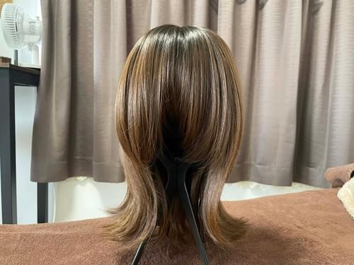 長め外ハネボブ。グラデーションマロン色も人気で、ウィッグカット専門美容師に、カットしてもらうと、オリジナルウィッグにも。